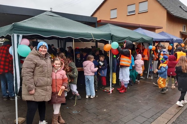 Trotz Regenwetter ließ sich die närrische Meute nicht vom Dorfspaziergang abhalten.
