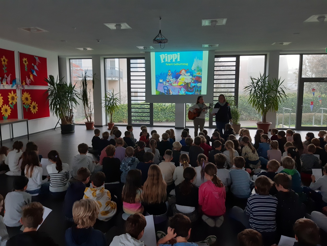 Im Anschluss daran lasen Viertklässler in Kleingruppen aus Pippi Langstrumpf vor. Darüber hinaus wird das Thema im Unterricht weiter aufgegriffen und in der Bücherei ein Pippi Langstrumpf-Tisch eingerichtet.