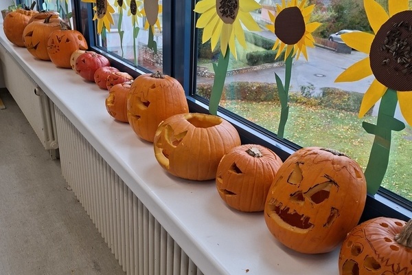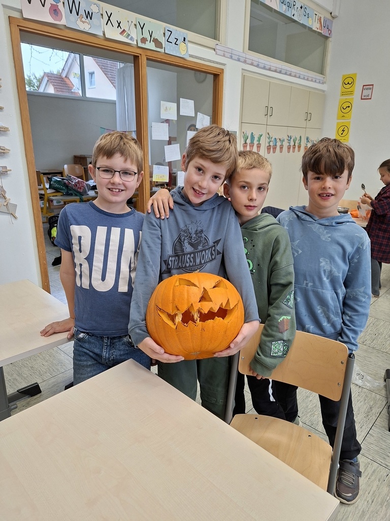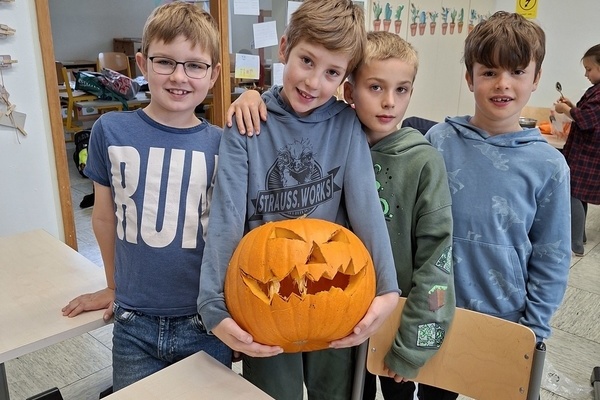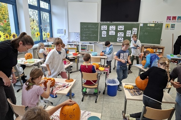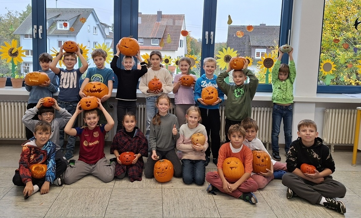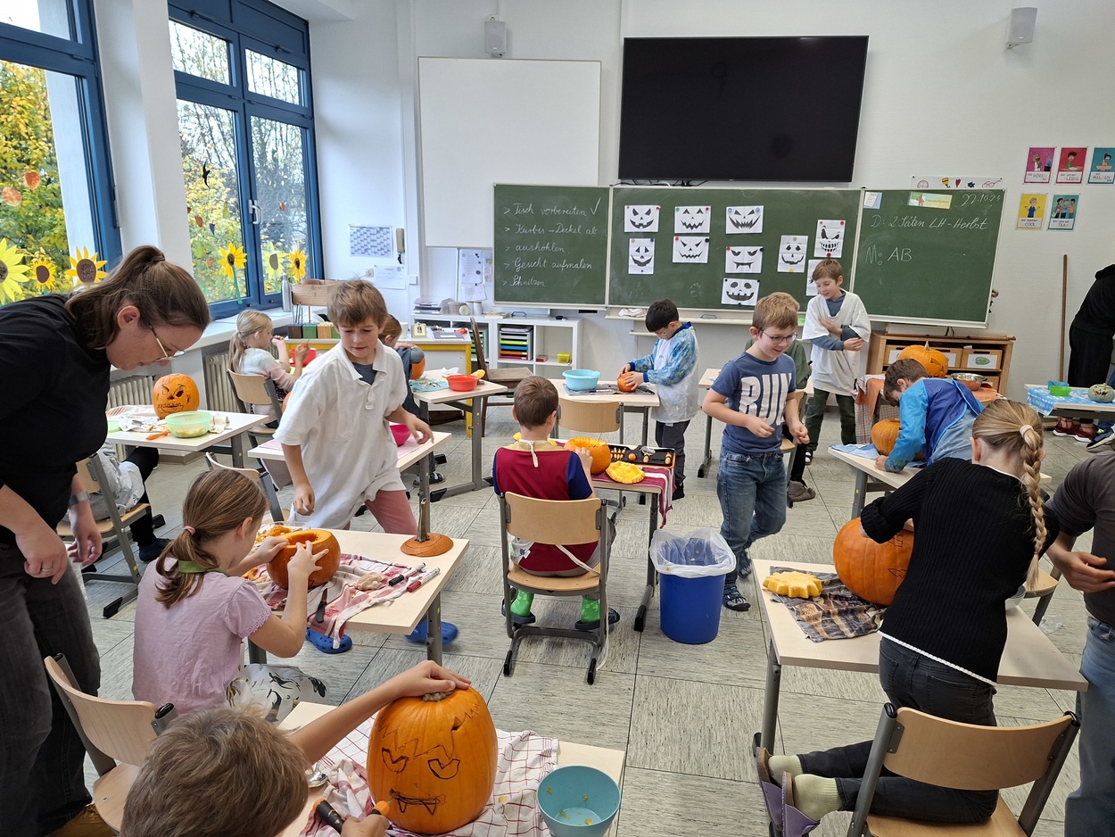 Im Herbst wurde es in der Klasse 3b richtig kreativ: Gemeinsam haben wir fleißig Kürbisse geschnitzt. Von fröhlich bis gruselig, von frech bis lustig war alles dabei. Mit Teamwork, Fantasie und einer großen Portion Spaß entstanden viele unterschiedliche Kürbisgesichter. Die Kinder waren mit Begeisterung dabei und haben gezeigt, wie viel man gemeinsam schaffen kann. Ein tolles Herbstprojekt, das uns allen in Erinnerung bleiben wird! 🍁✨