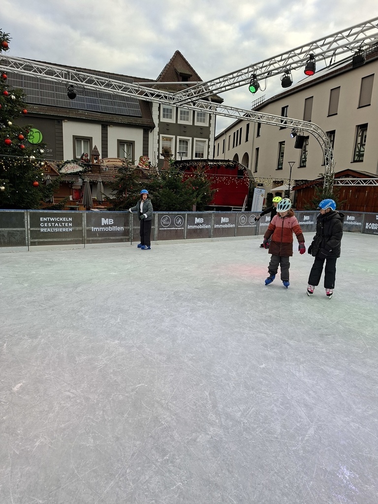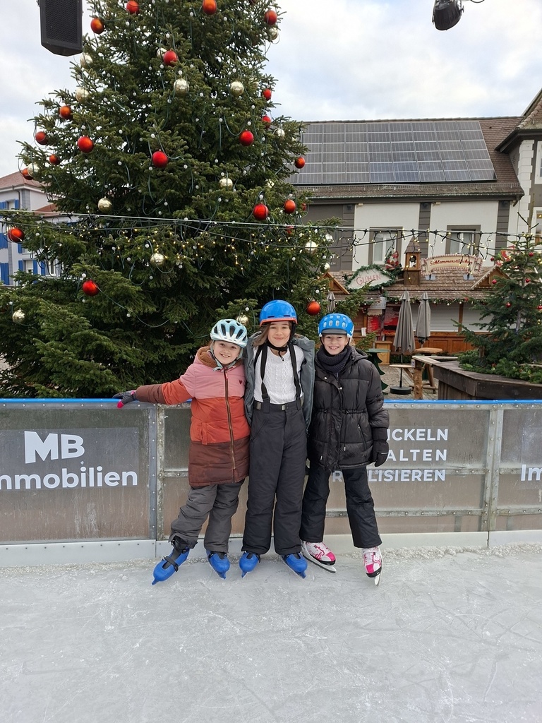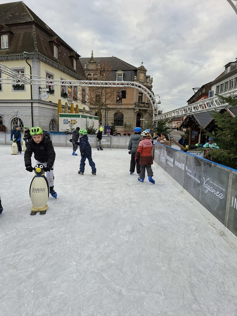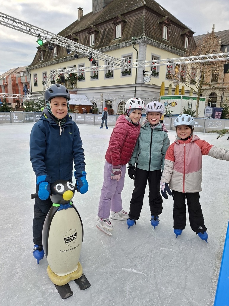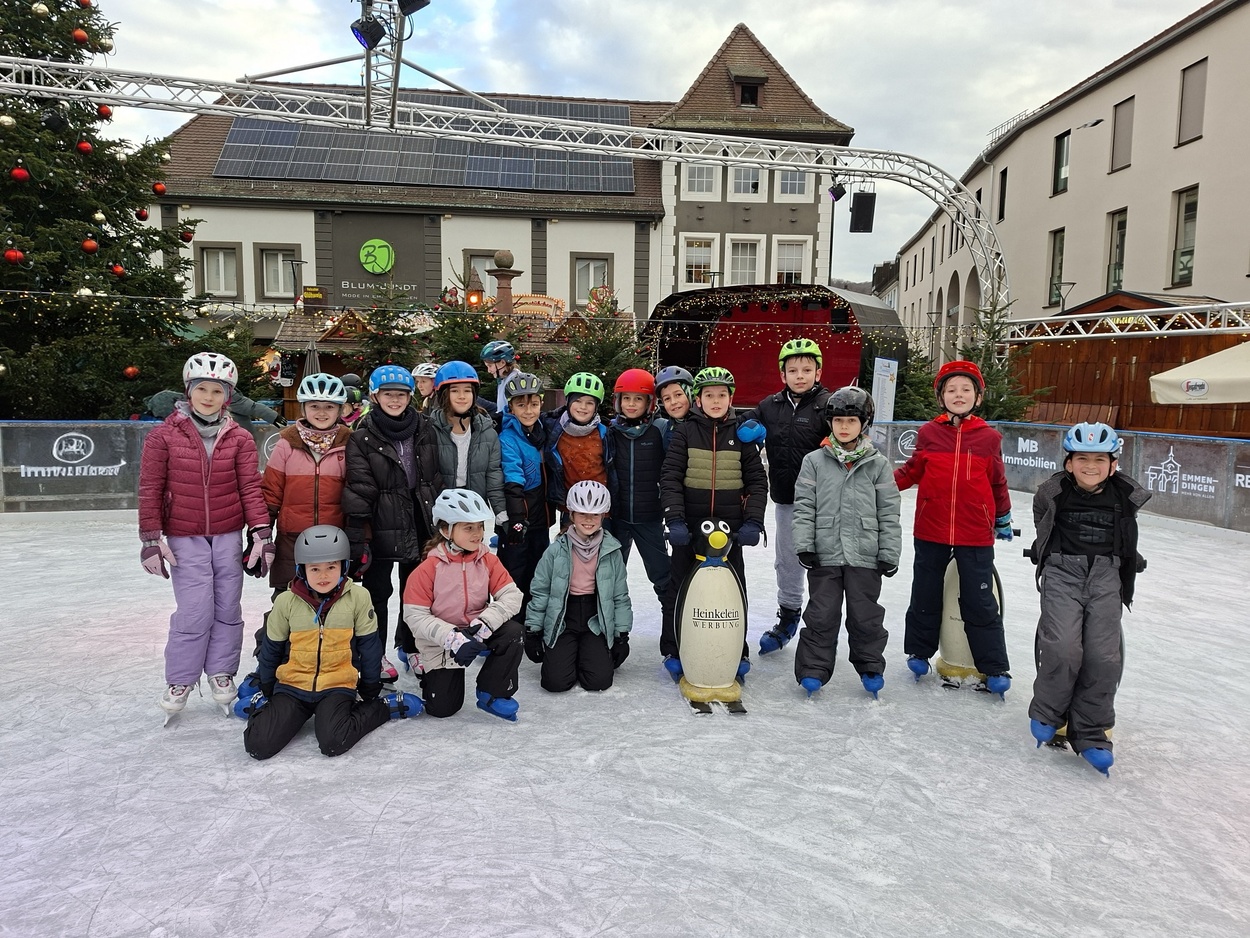 Die Klasse 3b verbrachte am Mittwoch einen aufregenden und sportlichen Tag auf der Eisbahn in Emmendingen. Anfangs war es ganz schön rutschig, doch gerade das sorgte für jede Menge Spaß. Obwohl das Schlittschuhlaufen anstrengend war und ordentlich in die Beine ging, ließen sich die Kinder nicht entmutigen. Immer wieder wagten sie sich aufs Eis, probierten Neues aus und wurden von Runde zu Runde sicherer. Es wurde viel gelacht und sich gegenseitig geholfen.