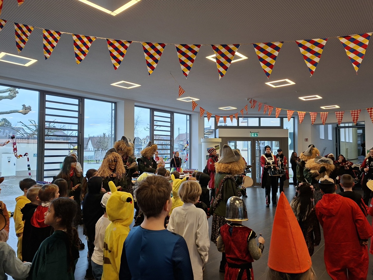 Ein großes Dankeschön geht an die beiden Narrenzünfte und die Guggenmusik für die närrische Befreiung sowie an die Eltern der Klasse 3, welche Hästräger, Musiker, Kinder und Lehrer auf Spendenbasis hervorragend bewirteten!