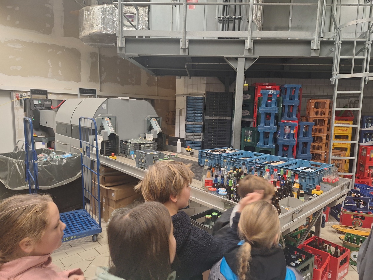 Im Markt angekommen, durften wir diesen erkunden, uns ins eiskalte Kühlhaus stellen, hinter die Kulissen der Pfand- und Abfallstation schauen und haben einen Geruchstest mit Gewürzen und Kräutern gemacht. Außerdem ging es viel um das Thema "Gesunde Ernährung" und wir bekamen ein leckeres und gesundes Frühstück mit buntem Gemüse, Vollkornbrot und Frischkäse. Obwohl wir gut in der Zeit waren, mussten wir am Schluss dann doch noch zum Bus spurten! Zum Glück hatten wir fixe Kinder, die den Bus mit Frau Banneitz anhielten. So kamen wir gut wieder nach Reute.