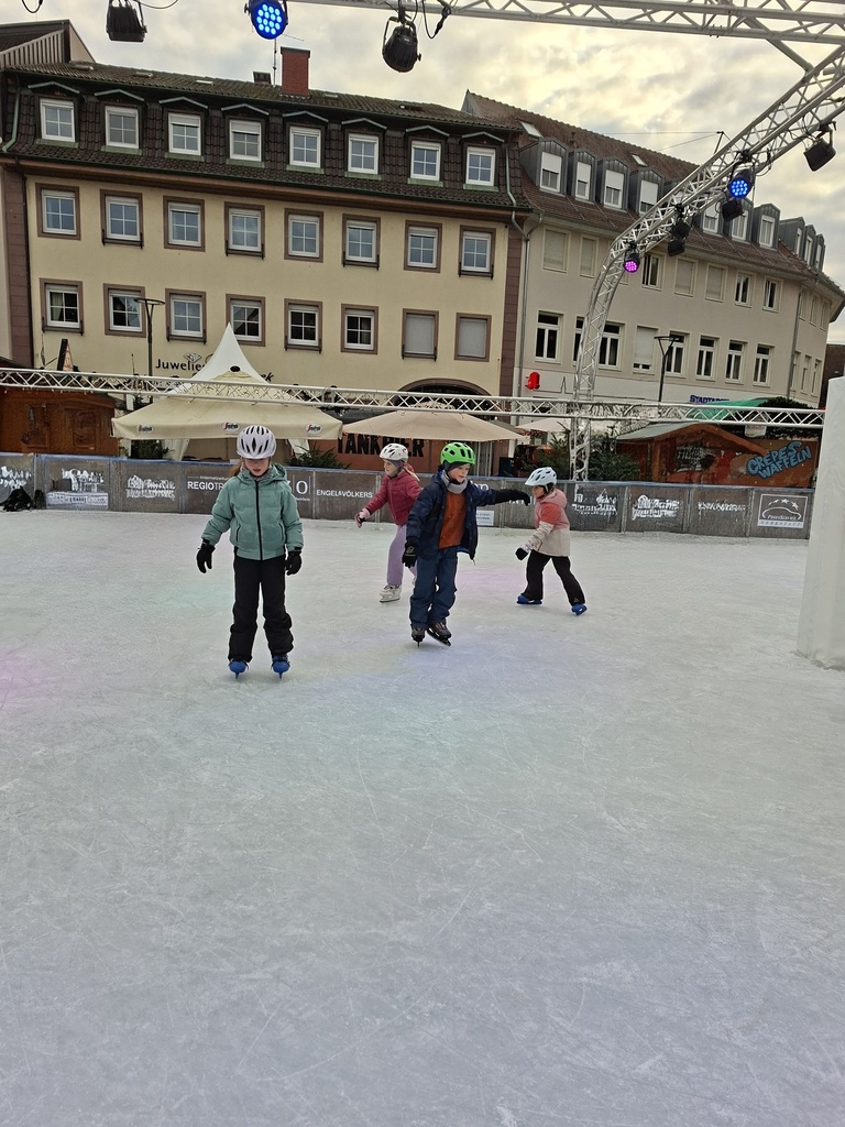Die Klasse 3b verbrachte am Mittwoch einen aufregenden und sportlichen Tag auf der Eisbahn in Emmendingen. Anfangs war es ganz schön rutschig, doch gerade das sorgte für jede Menge Spaß. Obwohl das Schlittschuhlaufen anstrengend war und ordentlich in die Beine ging, ließen sich die Kinder nicht entmutigen. Immer wieder wagten sie sich aufs Eis, probierten Neues aus und wurden von Runde zu Runde sicherer. Es wurde viel gelacht und sich gegenseitig geholfen.