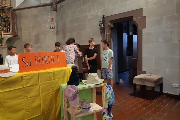 Unsere Religionslehrerinnen Frau Gairing und Frau Buderer stellten den Gottesdienst zum Schuljahresende unter das Motto "Sei behütet". Der persönliche Segen für die scheidenden Viertklässler bildete auch in diesem Jahr einen stimmungsvollen und emotionalen Abschluss rund um den Altar.